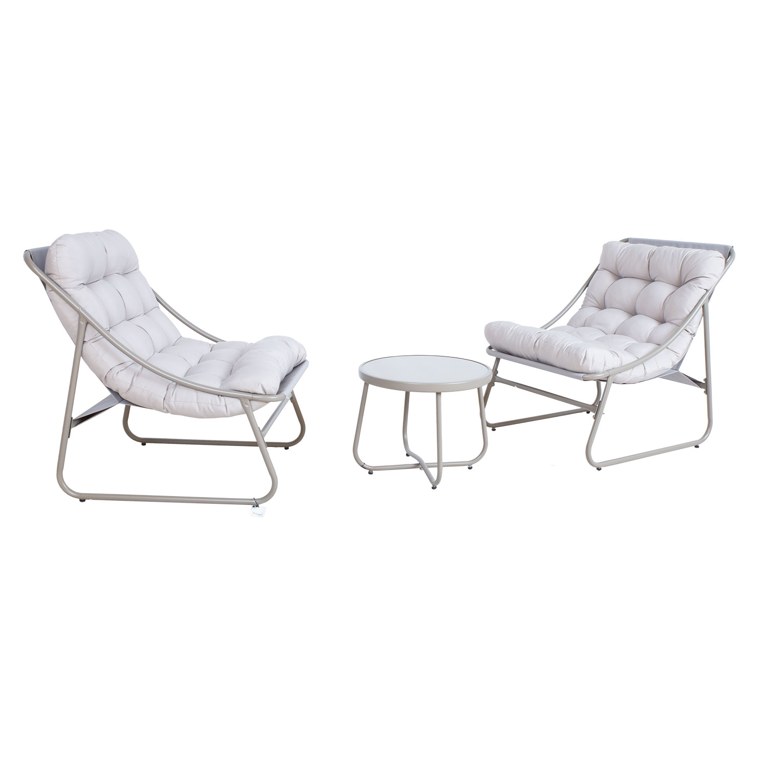 Aiamööblikomplekt JIVE laud ja 2 tooli. Toolide ja laua raamid on valmistatud terasest ja viimistletud beeži pulbervärviga. Lauaplaat: 5mm beež karastatud klaas. Tooli textilene iste laseb hästi õhku läbi, kuivab kiiresti ja seda on lihtne puhastada. Pehmed istmepadjad kuuluvad komplekti. Padjakatted on valmistatud polüesterkangast (180g / m²). Tooli üldmõõdud: 65 x 86 x H84 cm, istme kõrgus raami ääreni 39 cm. Istmepadja mõõdud: 65 x 110 x H12 cm. Laua mõõdud: D49,5 x H40 cm. Toode on muutlikes ilmastikutingimustes hästi vastupidav ja lihtsalt hooldatav. Kaitset ilmastikuolude eest vajavad ainult padjad. Välitingimustes kasutatava mööbli eluea pikendamiseks soovitame kasutada välimööbli katteid. HOIUSTAMINE: suvehooaja lõppedes soovitame aiamööblit hoiustada siseruumides. Puhastage ja kuivatage mööbel enne hoiule panekut. Kasutage hoiustamiseks kuiva ning hea ventilatsiooniga ruumi.