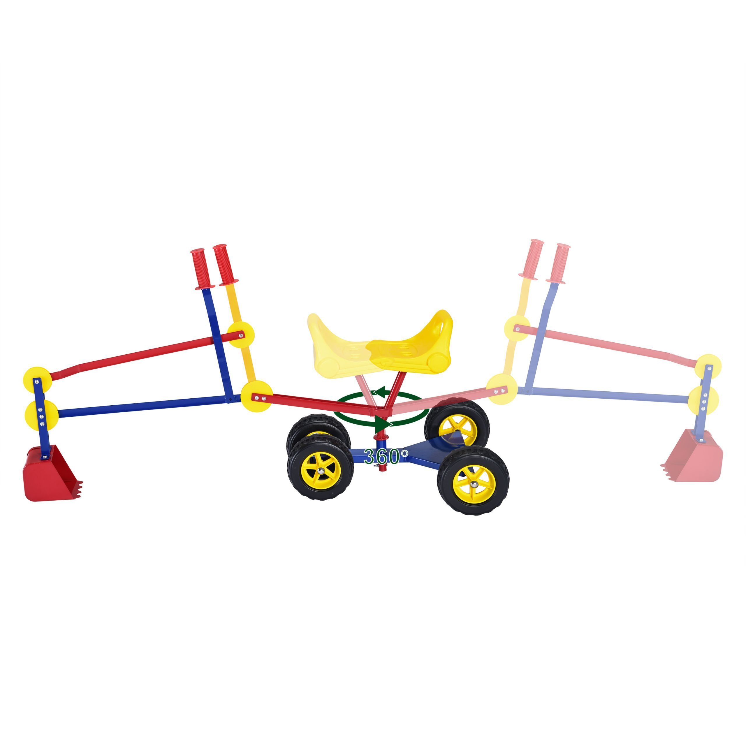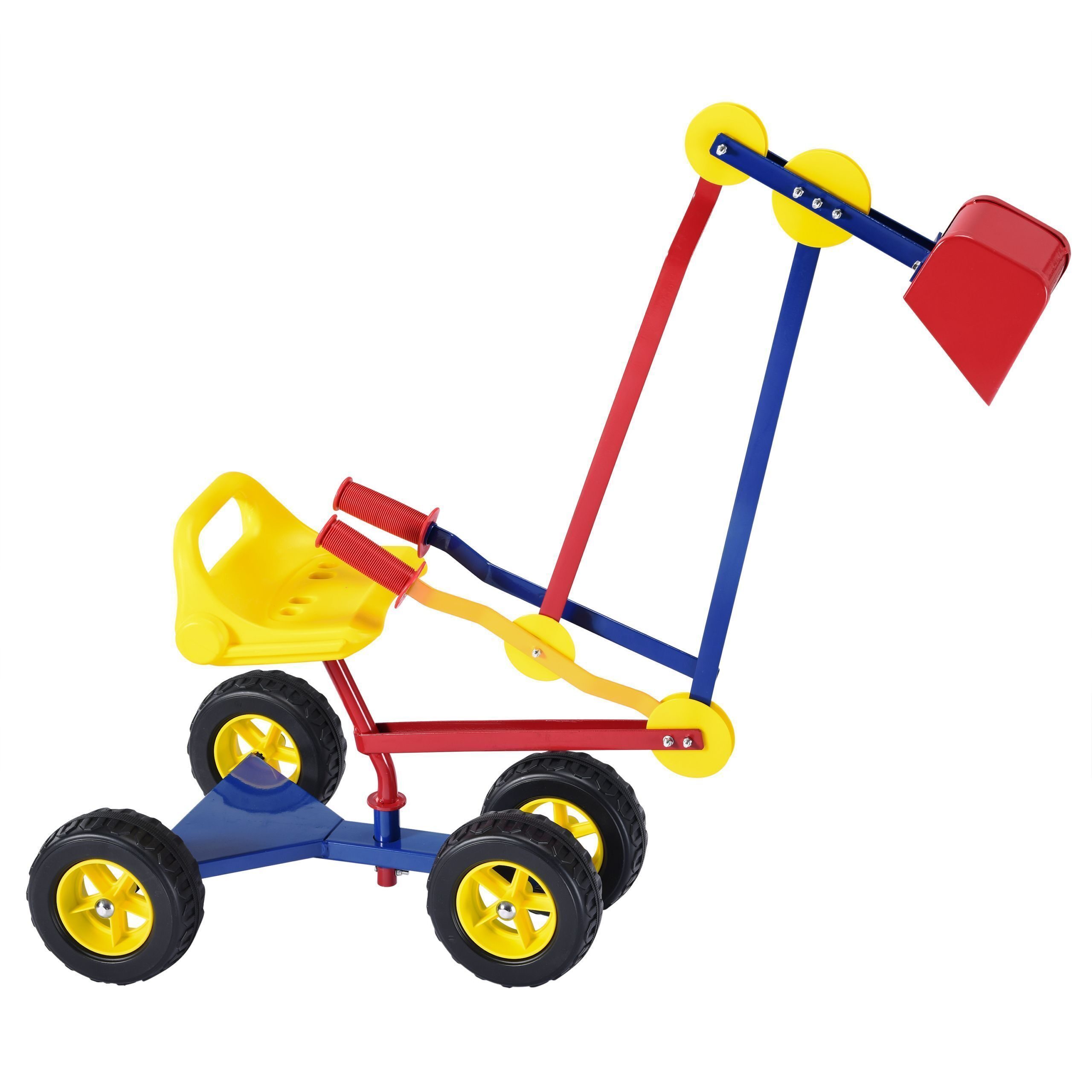 Värvus: sinine, punane, kollane. Mõõt: 120/124 x 41 x 62/86 cm. Istme suurus: 25×19,5×11 cm. Kopa suurus: 12,5 x 10 x 12 cm. Kärul on 4 plastikratast. Max koormus: 50 kg.