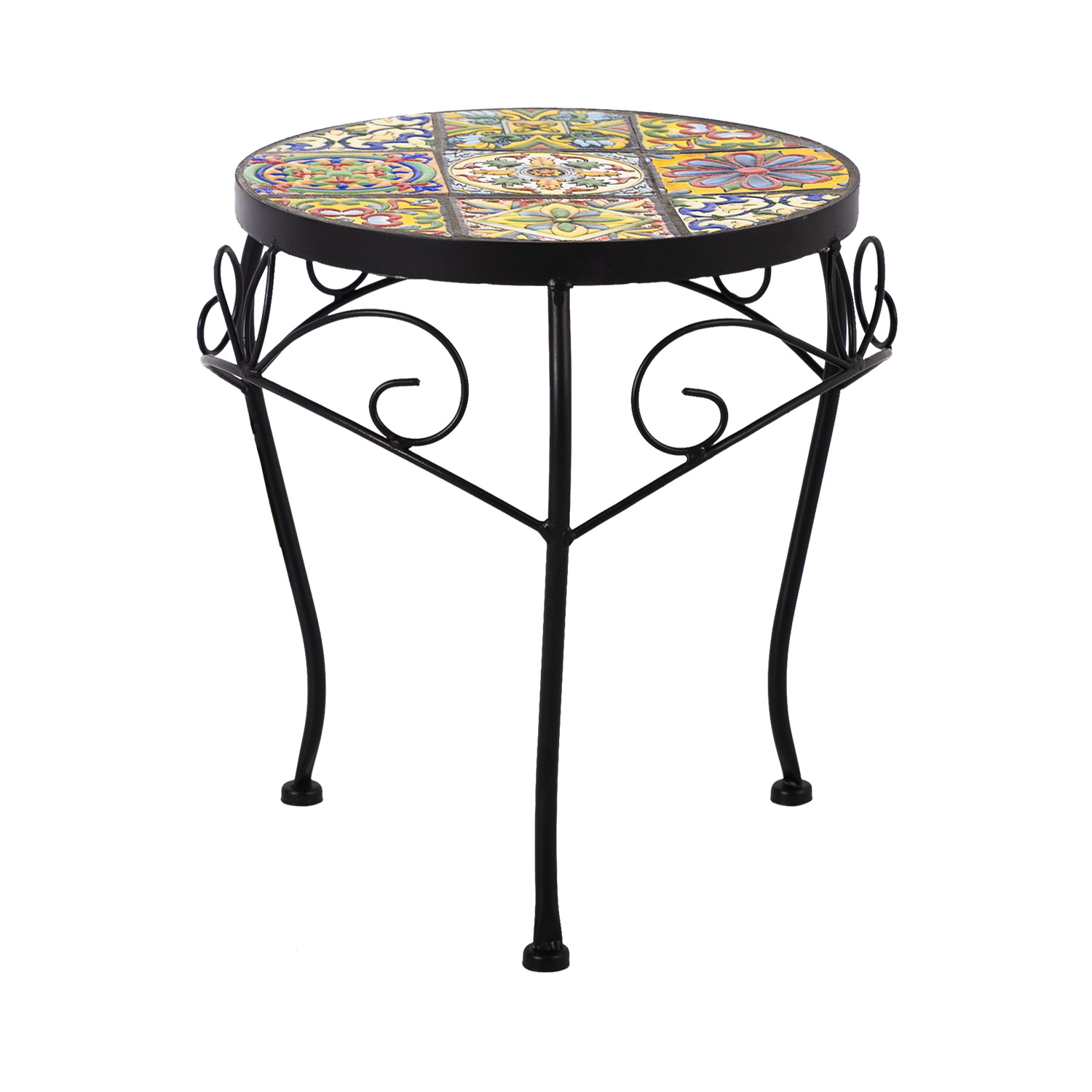 Lillepostament MOROCCO D30 x H35 cm. Pealmine mosaiikplaat on kaetud Morocco stiilis värviliste keraamiliste plaatidega. Metallist alusraam ja jalad on viimistletud musta pulbervärviga. Toode sobib kasutamiseks nii sise- kui väli tingimustes.