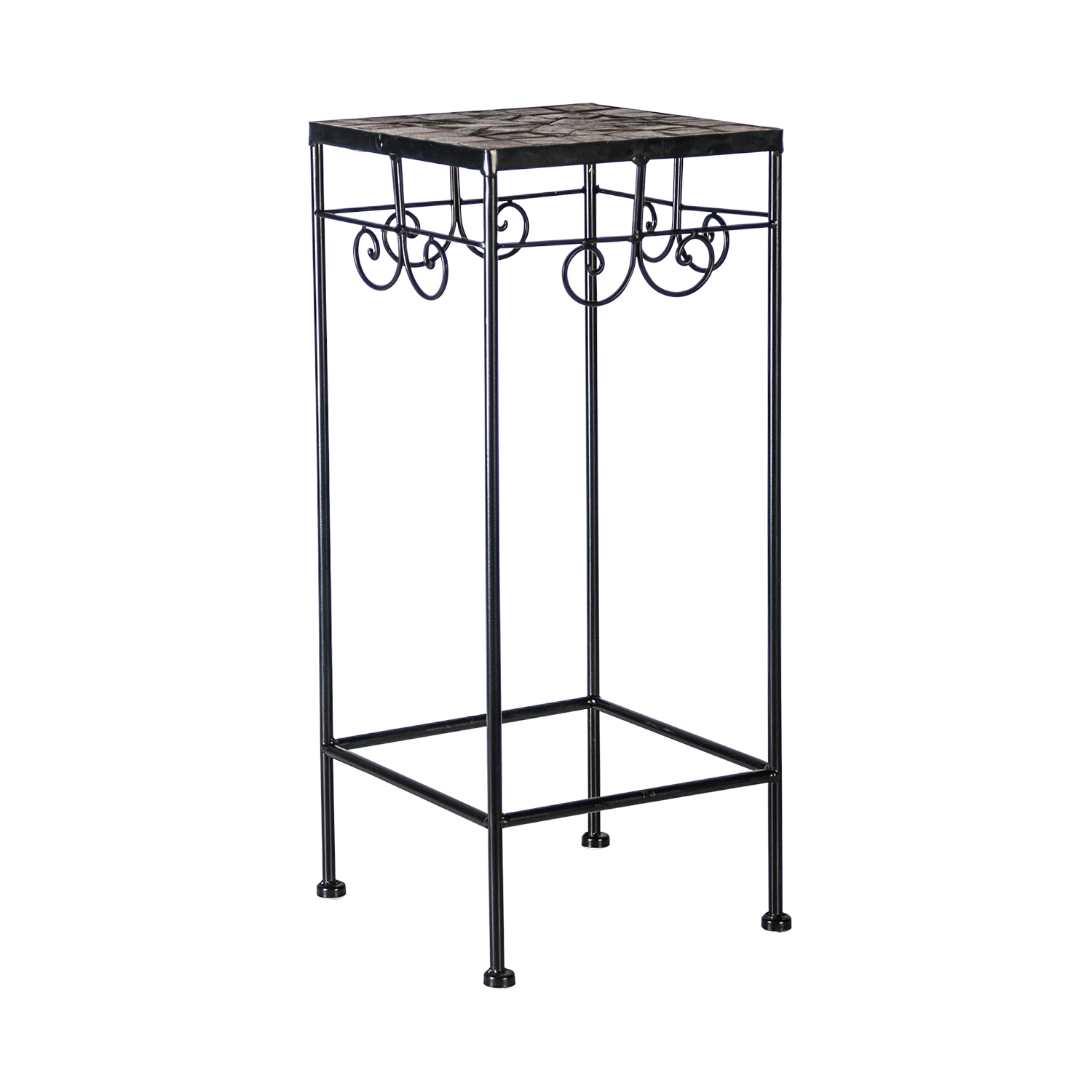Lillepostament MOSAIC 30 x 30 x H70 cm. Pealmine mosaiikplaat plaat on kaunistatud pruunides ja hallides toonides keraamiliste plaatidega. Metallist alusraam ja jalad on viimistletud musta pulbervärviga. Toode sobib kasutamiseks nii sise- kui väli tingimustes.