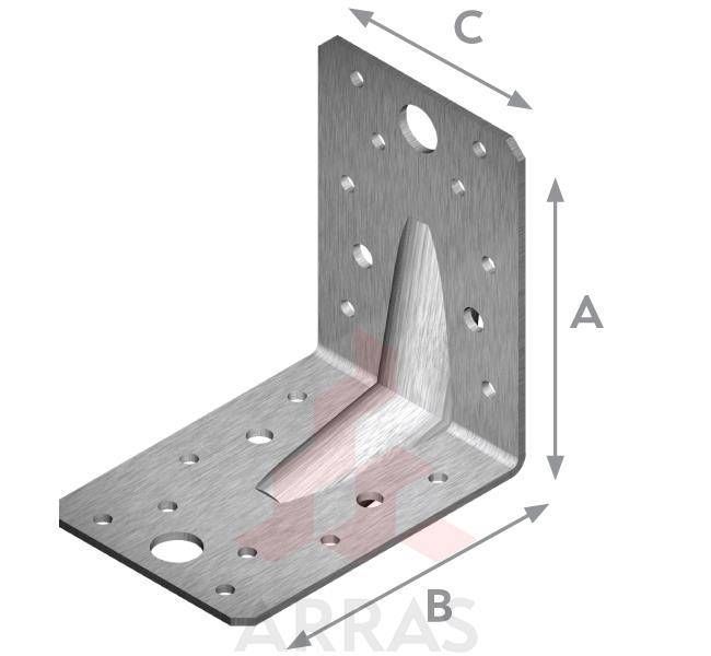 Ühe külje pikkus (A): 140 mm, teise külje pikkus (B): 140 mm, laius (C ): 90 mm, plaadi paksus: 2,5 mm. Toode on valmistatud kuumtsingitud terasest dx51d+Zn din en 10346, pinnakattega Zn 275 g/m².