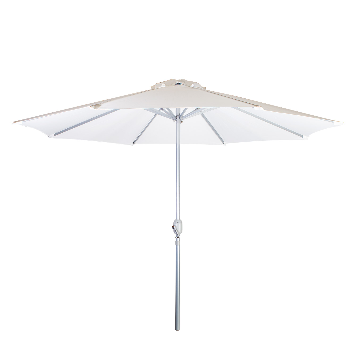 Päikesevari BAHAMA D2,7 m, valge. Päikesevari on kaetud valge polüesterkangaga 180 g/m². Varjul on 8 terasribi 12 x 18 mm. Alumiiniumist tugijalg on viimistletud hõbedase pulbervärviga. Jala läbimõõt on 38 mm. Päikesevarjualus ei kuulu komplekti. HOIATUS: Toode ei ole mõeldud kaitseks vihma eest ega kasutamiseks tugeva tuule korral. Sulgege päikesevari alati peale kasutamist. HOIUSTAMINE: Suvehooaja lõppedes soovitame päikesevarju hoiustada siseruumides. Puhastage ja kuivatage päikesevari enne hoiule panekut. Kasutage hoiustamiseks kuiva ning hea ventilatsiooniga ruumi.
