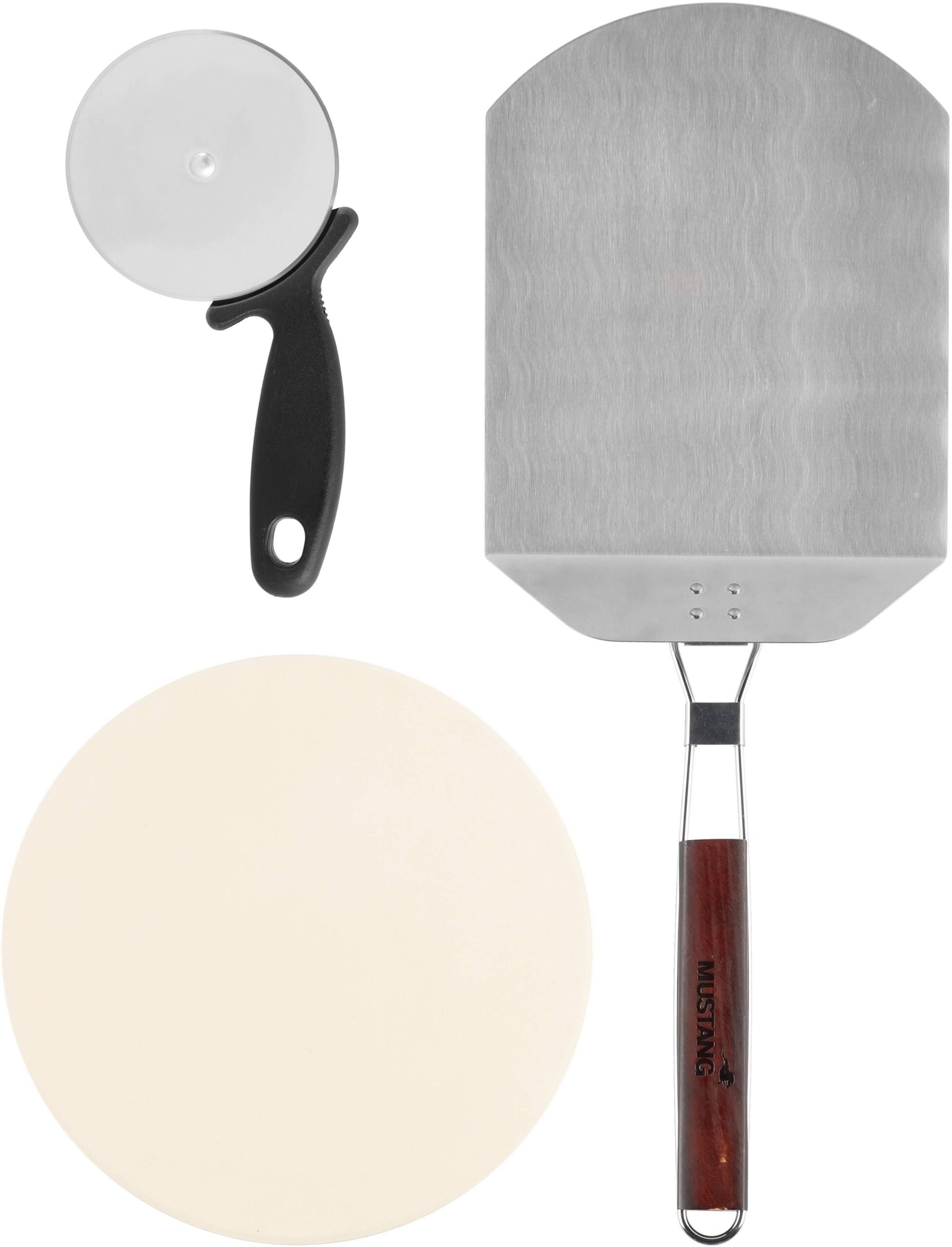 Mustang komplekt pitsa küpsetamiseks. Komplektis on pitsakivi 32 cm, pitsalõikur ja labidas.