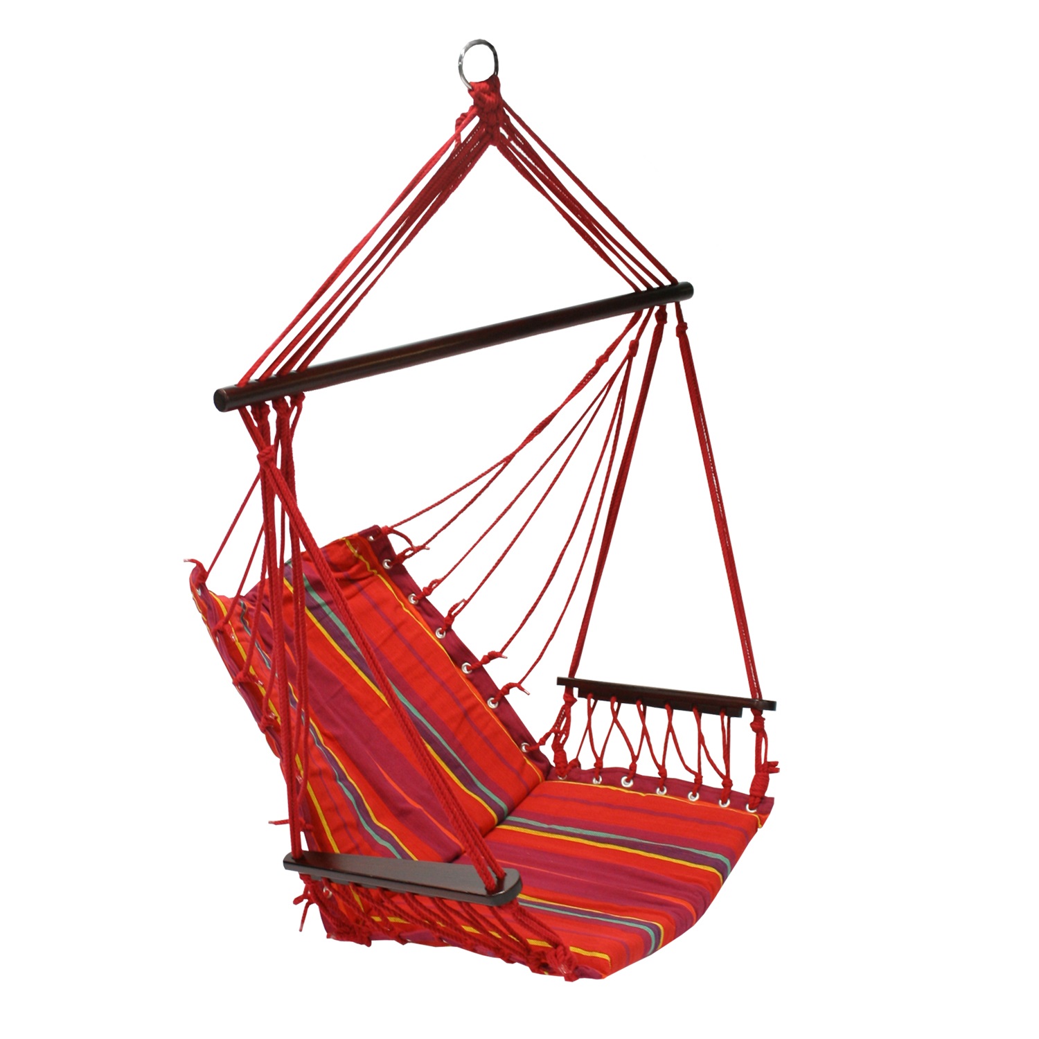 Ripptool HIP punane. Ripptooli iste on valmistatud puuvillasest kangast. Istme ja seljatoe sees on 4cm poroloonist polsterdus. Istme laius on 48cm, sügavus 45cm, seljatoe kõrgus on 55cm. Puidust käetoe pikkus on 39cm, ülemise puidust pulga pikkus on 80cm. Maksimaalne kandevõime 120kg. Ripptooli võib riputada tugeva puuoksa või tala külge. Samuti on võimalik kiige üles riputamiseks kasutada kandejalga. HOOLDUS: toote eluea pikendamiseks kaitske seda ilmastikuolude eest. Ärge jätke kiike pikemaks ajaks päikese või vihma kätte. Kanga ja nööride vastupidavus väheneb UV-kiirguse ja liigniiskuse mõjul ning värvid tuhmuvad. Võimalusel korjake ripptool peale kasutamist kokku ja hoiustage kuivas, hea ventilatsiooniga ruumis. Enne hoiule panekut laske kiigel täielikult kuivada. Ripptooli võib pesta käsitsi kuni 40-kraadises vees. Kasutage ainult leebeid, mitte pleegitava toimega pesuvahendeid.