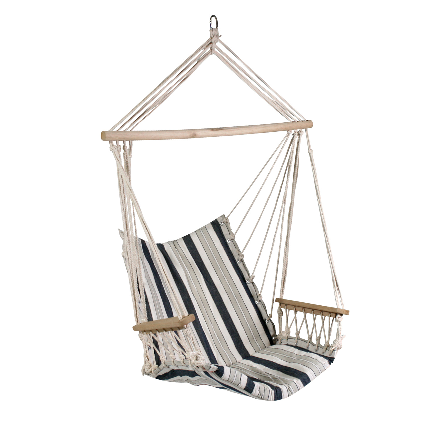 Ripptool HIP sinisetriibuline. Ripptooli iste on valmistatud puuvillasest kangast. Istme ja seljatoe sees on 4cm poroloonist polsterdus. Istme mõõdud laius on 48cm, sügavus 45cm, seljatoe kõrgus on 55cm. Puidust käetoe pikkus on 39cm, ülemise puidust pulga pikkus on 80cm. Maksimaalne kandevõime 120kg. Ripptooli võib riputada tugeva puuoksa või tala külge. Samuti on võimalik kiige üles riputamiseks kasutada kandejalga. HOOLDUS: toote eluea pikendamiseks kaitske seda ilmastikuolude eest. Ärge jätke kiike pikemaks ajaks päikese või vihma kätte. Kanga ja nööride vastupidavus väheneb UV-kiirguse ja liigniiskuse mõjul ning värvid tuhmuvad. Võimalusel korjake ripptool peale kasutamist kokku ja hoiustage kuivas, hea ventilatsiooniga ruumis. Enne hoiule panekut laske kiigel täielikult kuivada. Ripptooli võib pesta käsitsi kuni 40-kraadises vees. Kasutage ainult leebeid, mitte pleegitava toimega pesuvahendeid.