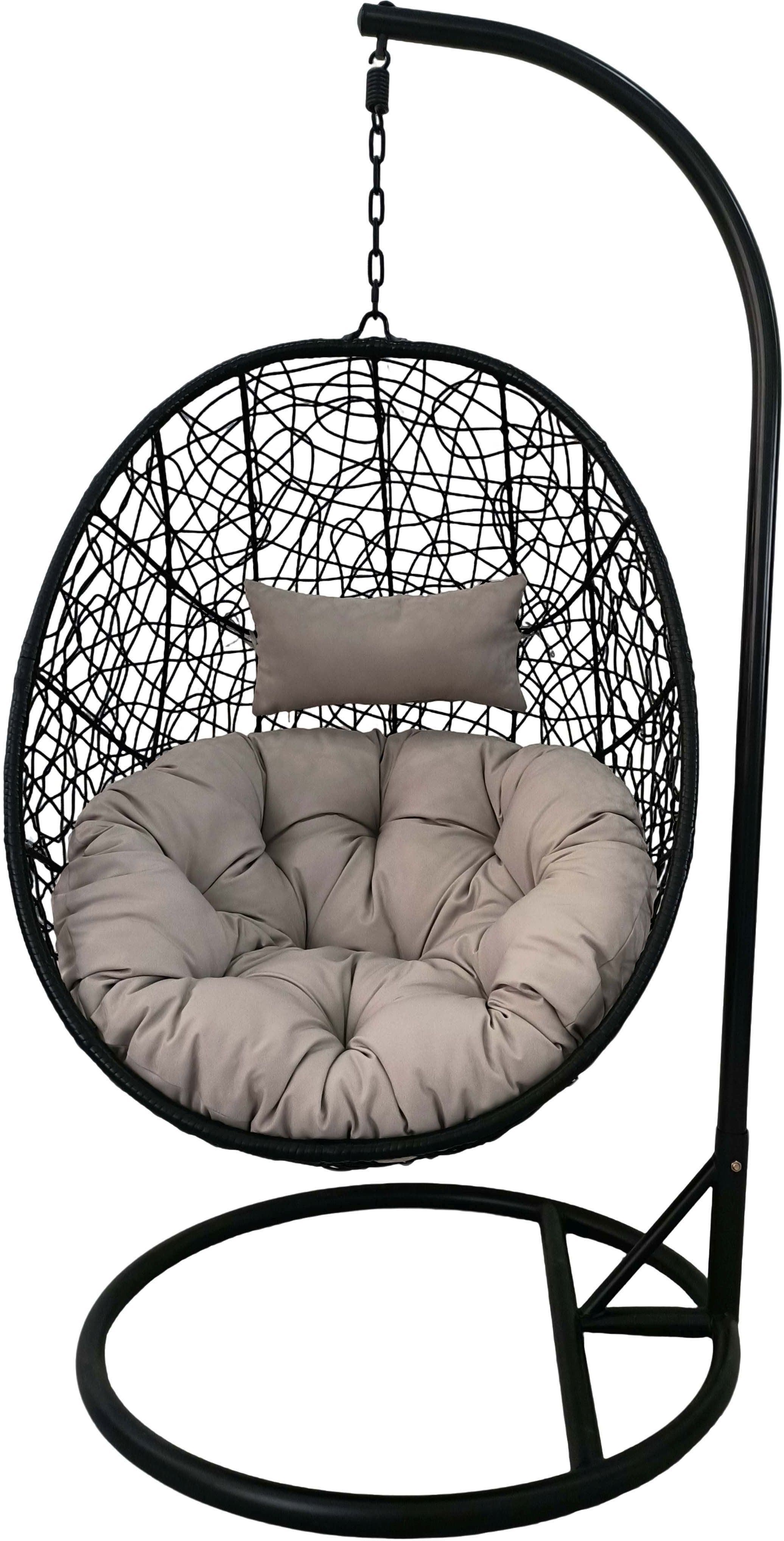 Ripptool padjaga, mille raami mõõdud on 197 x 95 cm ja istme mõõdud 91 x 119 x 68 cm, on must/beez värvi ning materjaliks on rotang ja teras. Maksimaalne kandevõime on 120 kg.