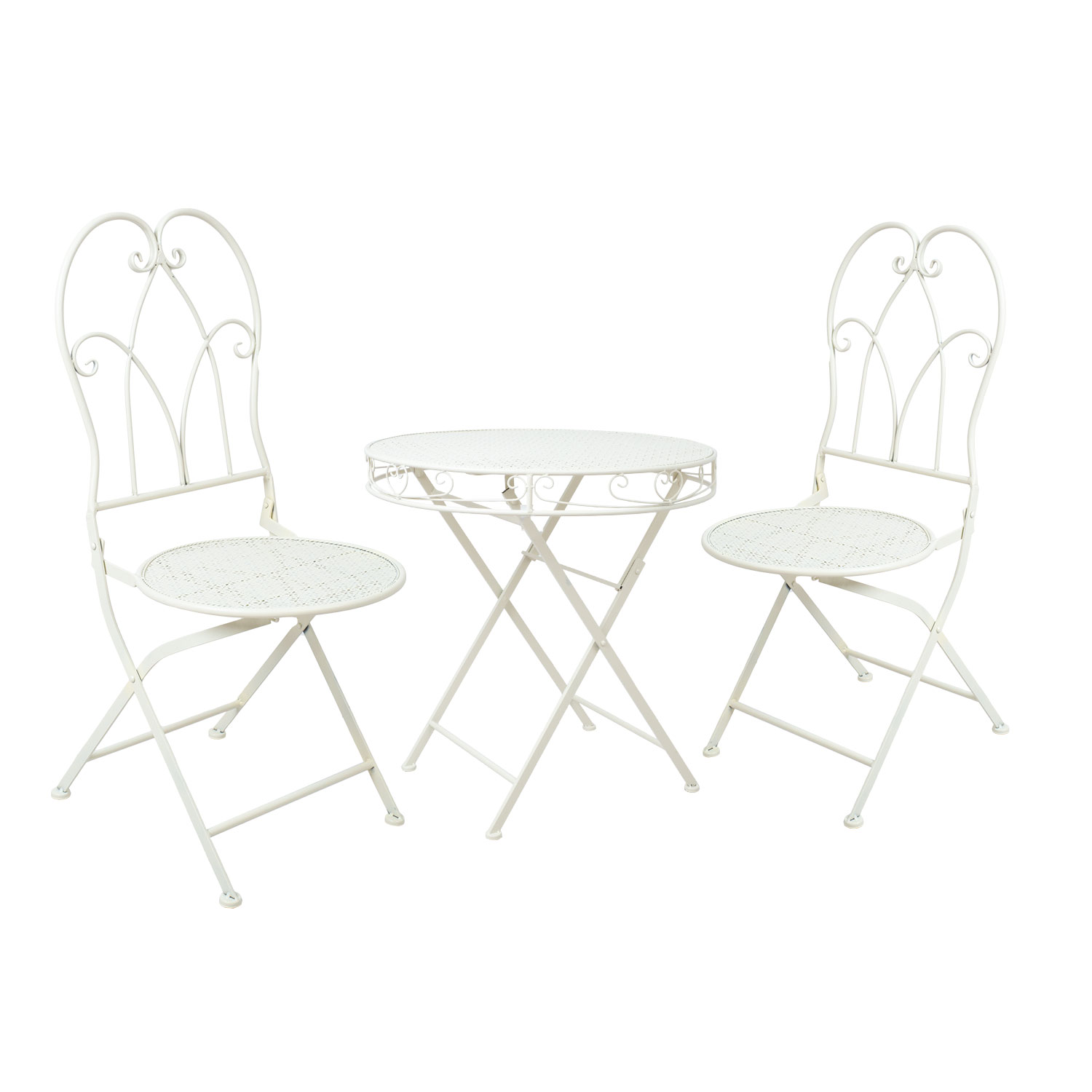 Rõdukomplekt SANDY laud ja 2 tooli, kokkupandav, antiikvalge. Laud ja toolid on valmistatud metallist ja viimistletud pulbervärviga. Laua mõõdud on D70xH73cm. Tooli mõõdud on 41x54xH93cm. Kokkupanduna võtavad laud ja toolid vähe ruumi ning neid on lihtne hoiustada ja teisaldada. HOOLDUS JA HOIUSTAMINE: metallist mööbel on praktiliselt hooldusvaba, piisab regulaarsest puhastamisest. Suvehooaja lõppedes soovitame aiamööblit hoiustada siseruumides. Puhastage ja kuivatage mööbel enne hoiule panekut. Kasutage hoiustamiseks kuiva ning hea ventilatsiooniga ruumi.